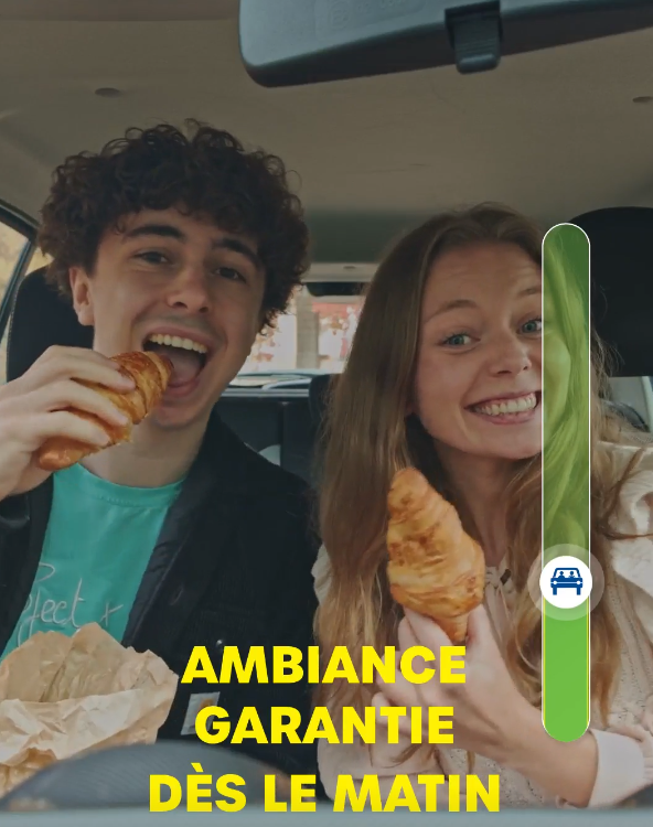 Ce premier concept retrace le trajet d’un étudiant en 45 secondes, sous la forme d’un vlog. Tout au long de son déplacement, une jauge animée se remplit d’émoticônes traduisant son ressenti. La vidéo est également ponctuée de conseils simples et concrets pour rendre les déplacements du quotidien plus agréables.